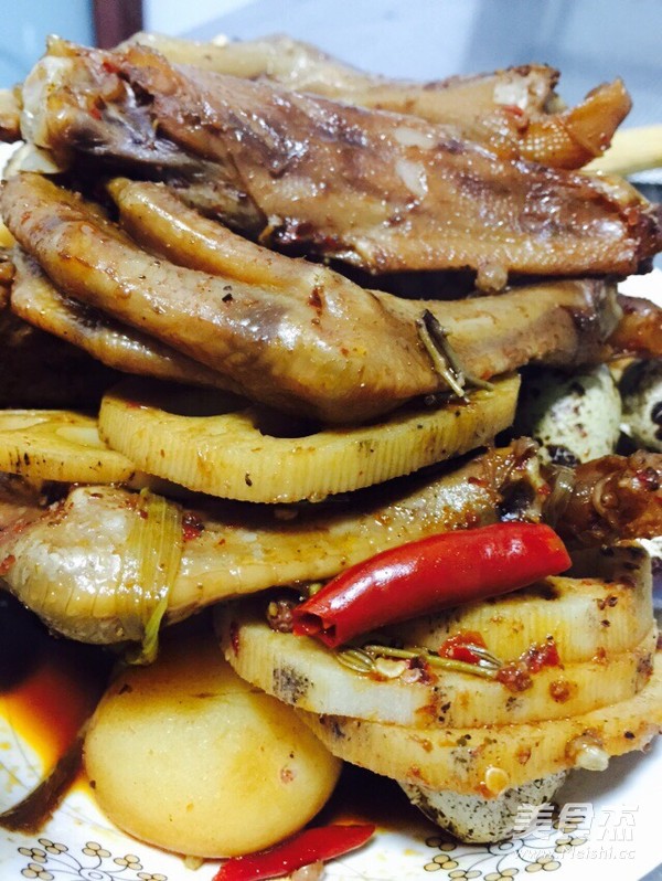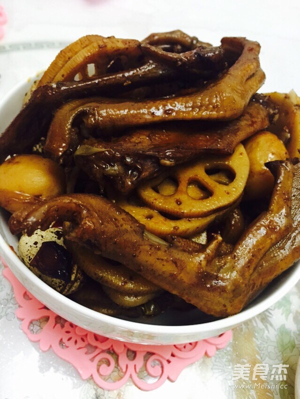 鴨掌300克 雞翅根300克 小土豆400克 鵪鶉蛋500克 雞腳200克 藕2節(jié)