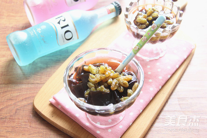 龜苓膏有滋陰潤燥,降火除煩,清利濕熱,涼血解毒等功效,是夏季非常不錯滴解暑佳品,用RIO雞尾酒搭配龜苓膏,再配上RIO浸泡過的葡萄干,味道還挺不錯哦。