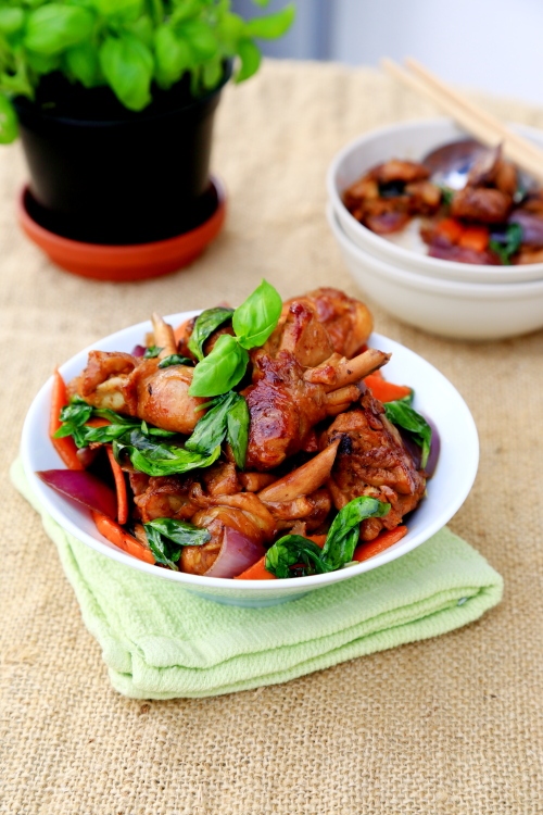 第一次做三杯雞就愛上了,真得不愧是道名菜,俺有點(diǎn)相見恨晚的感覺。