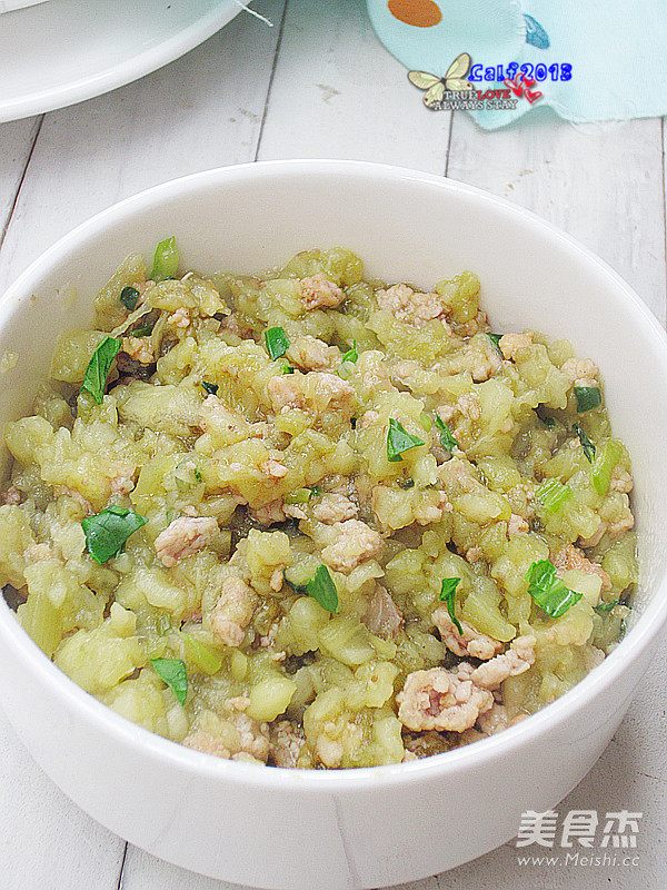 2.紫茄洗凈剝皮,切小塊,青菜洗凈切碎