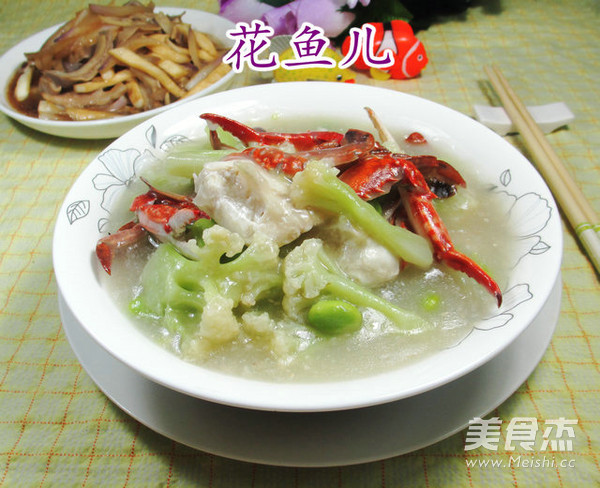 1.食材:花菜(已清洗)、螃蟹(已清洗)、毛豆肉(已淘洗)、水淀粉