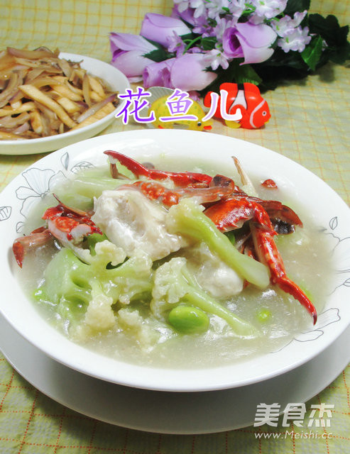 5.接著,合入收拾好的螃蟹翻動(dòng)一下煮開至熟。