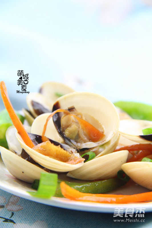 白貝1.5斤 黑木耳適量 紅蘿卜半根 蔥花兒適量 青椒半個(gè)