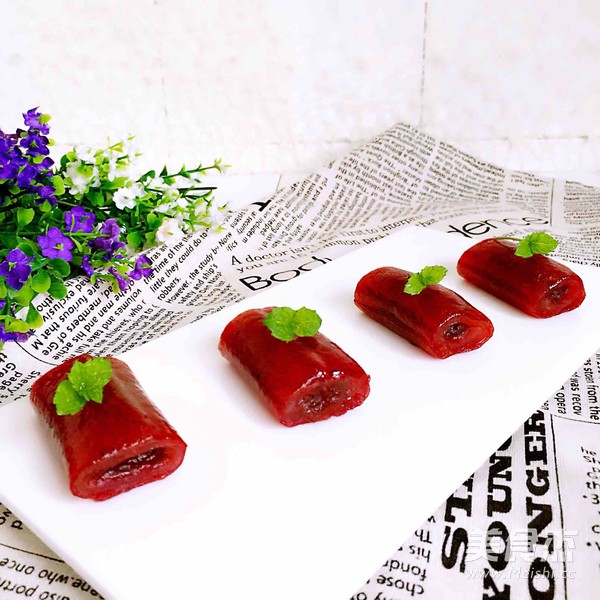 17.把豆沙卷放入蒸籠里,這個時候的顏色多漂亮
