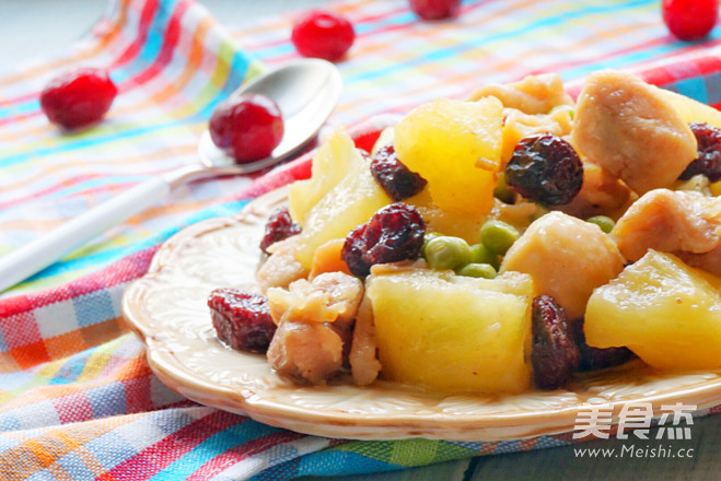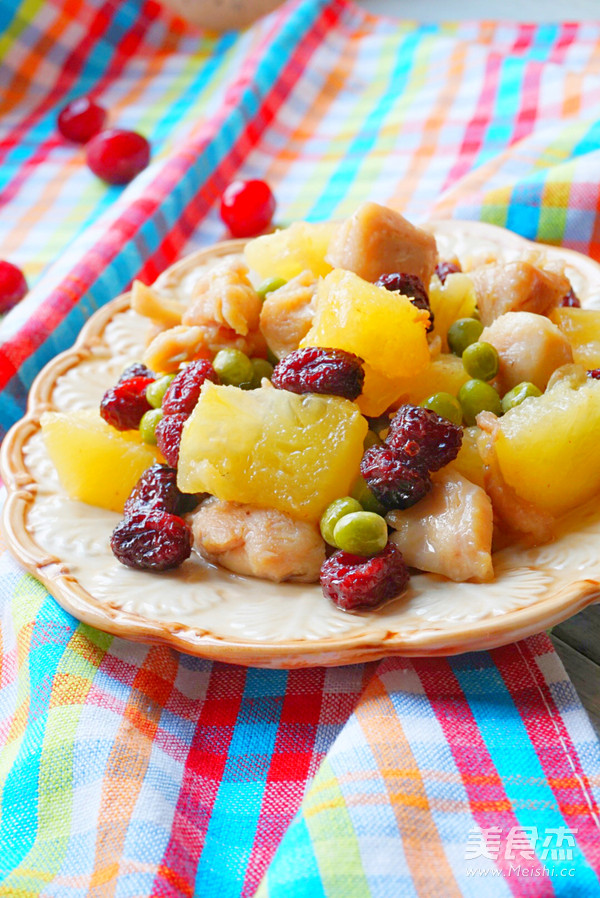 雞腿2只 蔓越莓干30克 青豆30克 菠蘿30克