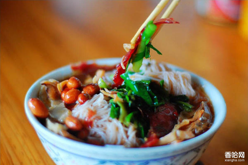 以往,海南粉是海府地區(qū)傳統(tǒng)小吃。當?shù)厝藢⒑D戏郛?u data-iamm="Gpyu9b">早餐吃,當正餐吃;平常吃,過節(jié)吃;自己吃,待客吃。就象廣州人請朋友上自家時常說:“到我家飲湯!”一樣,海府人說的是:“上我家吃粉!”。