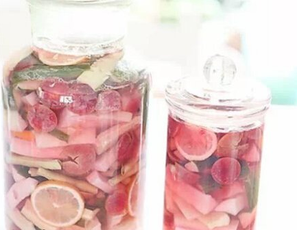 食材:白蘿卜1000g、黃瓜1000g、李子250g、鹽適量、冰糖適量、純凈水適量