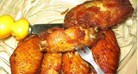 3、用燒烤檔,烤23-24分鐘即可,中間每隔5-6分鐘將雞翅拿出涂上蜂蜜,將花椒、八角與鹽一同干炒片刻,將鹽拿出來,擦在雞腿或雞翅上,過雞腿5小時(shí),雞翅3小時(shí), 放入預(yù)熱到350度的爐子里,烤3個(gè)小時(shí),不時(shí)想起來,就去聞一聞,翻一翻,最后用broil將皮烤脆(只能烤幾分鐘,否則必糊,前功盡棄,切切!)。其好吃無比!