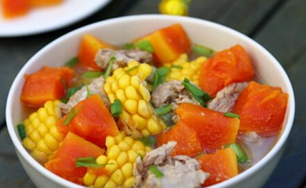 食材:木瓜500g、鮮玉米500g、排骨湯適量、鹽適量
