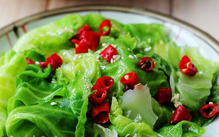 8)將熱油潑在卷心菜上,激出辣椒的香味,拌勻即可食用