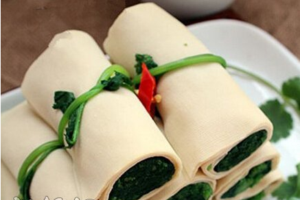 食材:千張100g、菠菜300g、黃豆醬適量、鹽適量