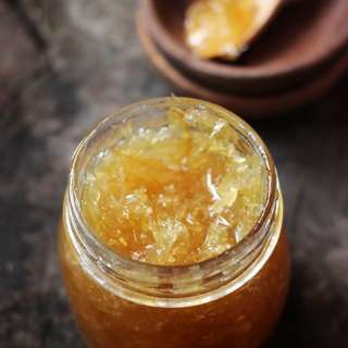 蜂蜜柚子茶的主要材料為蜂蜜、柚子皮、柚子肉和冰糖。其制作方法如下:第一步,將柚子皮放入溫水中浸泡一會(huì)兒,然后用刀將柚子皮內(nèi)部的白膜全部刮干凈,建議多搓洗幾遍。第二步,將處理好的柚子皮切成細(xì)絲,然后和柚子肉一起入鍋,并加入適量的清水和冰糖,小火慢熬至粘稠。第三步,關(guān)火后,將煮好的東西晾涼,最后加入適量的蜂蜜,攪拌均勻即可。飲用時(shí),只要取適量的蜂蜜柚子膏,泡水喝即可。