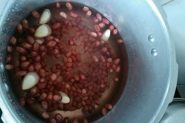 1. 做法很簡單,把材料準(zhǔn)備好:花生,大蒜,冰糖,放到高壓鍋里,加入適量的水,煮個1個小時就行了,喝湯吃花生,味道很不錯的!