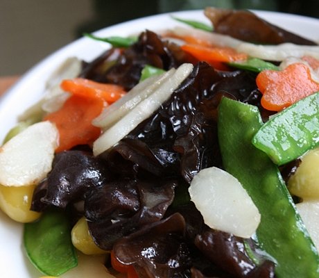 材料:干木耳、銀杏仁、荷蘭豆、荸薺、胡蘿卜