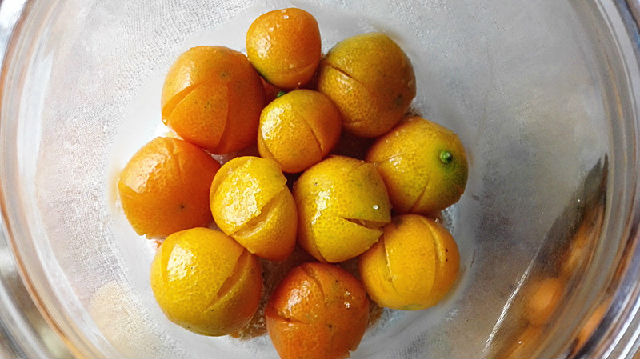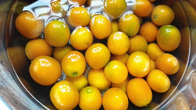 2、將金錢桔用清水沖洗干凈。