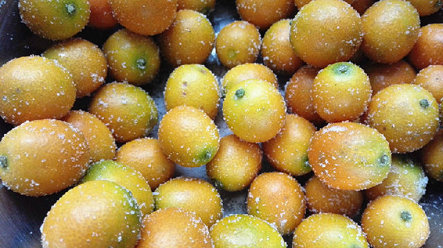1、在超市或水果店購買的金錢桔,這個時(shí)候正是金錢桔成熟的季節(jié),很適合來做糖漬金錢桔。