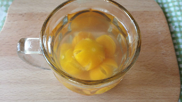 18、想喝的時(shí)候取幾顆金錢桔放入杯子,加溫水沖調(diào),可以用勺子將金錢桔果肉搗碎,這樣喝起來口感更好,化痰止咳的效果也會更好。