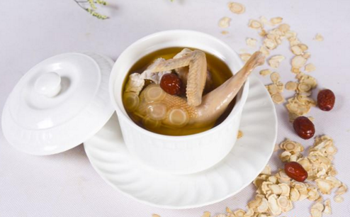 食物搭配:山藥紅棗烏雞湯。做法:烏雞一只,山藥60g,大棗10枚,烏雞切小塊,放入沸水中焯去血污;山藥去皮切滾刀塊;將所有食材放入湯鍋中,加入足量的水,開火燒開后,小火煲2個(gè)小時(shí),出鍋前撒入適量鹽、味精即可。