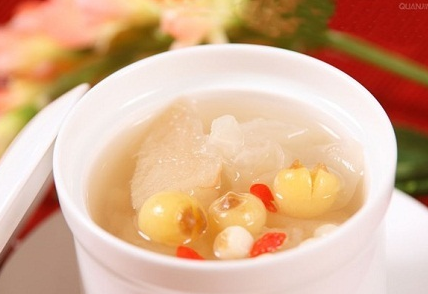 制法:將生百合蒸熟,加入一個(gè)蛋黃,以200毫升水?dāng)噭?,加入少許冰糖,煮沸后再以50毫升的涼開水?dāng)噭颍谒耙恍r(shí)飲用。