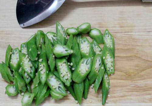 材料:新鮮秋葵、清水、鹽、食用油、芝麻油、姜、醬油(或豉油)、蠔油、白糖(或辣椒)