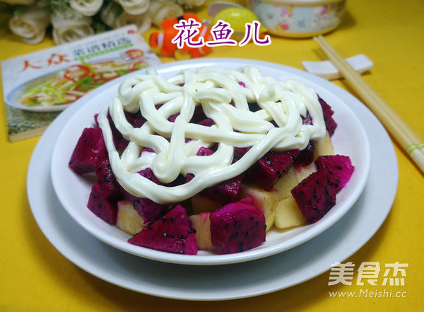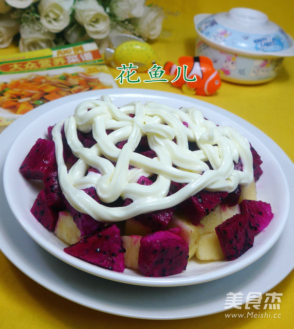 1.食材:蘋果、火龍果、沙拉醬