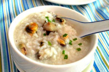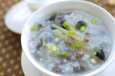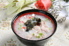 主料:粳米100克,松花蛋60克,淡菜(干)50克。調(diào)料:鹽1克,香油5克,料酒3克。