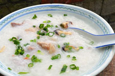 主料:骨頭200g,豬瘦肉150g,淡菜50,大米50g。輔料:油,鹽,姜幾片,米酒幾滴。