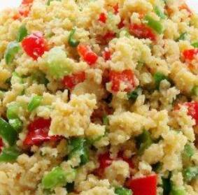 豆渣400g 青椒80g 玉米腸40g 香蔥10g 大蒜6g 生姜4g 鹽1小勺 味精1/4小勺 干辣椒5g