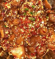 8.澆上原鹵汁,撒點(diǎn)切碎的尖椒。