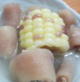 1.準(zhǔn)備好食材,玉米,豬尾巴。
