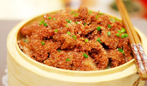 這道菜做起來相對簡單,需用蒸籠蒸到肉軟。其特點(diǎn)是色澤紅亮,咸鮮微辣。肉是肥而不膩,易化渣,紅薯略帶點(diǎn)甜味,糯,口感好。你也可以用豌豆或南瓜代替紅薯。另外此道菜無需再加鹽了,因?yàn)檑h豆瓣和豆腐乳汁本來就有足夠的鹽味。蒸肉米粉和郫縣豆瓣可以在超市中找到。