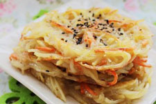 1、如果采用土豆絲的做法,土豆絲要粗一些,這種口感才能體現(xiàn),最好現(xiàn)拌現(xiàn)煎,放久了會出水,口感不好。