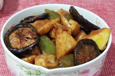 主料:冬筍200克。輔料:胡蘿卜50克,柿子椒50克。調(diào)料:食鹽1茶匙,醬油1茶匙,味精1/4茶匙,蔥,蒜,淀粉,白糖1茶匙,植物油。