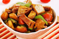 4、放入青椒快速炒勻,勾薄芡后放入味精調(diào)味即可。