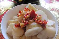 主料:洋姜1500克。調(diào)料:食鹽30克,白酒100克,剁椒適量,紅糖10克。