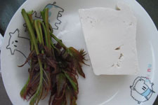 主料:香椿50g,豆腐150g。
