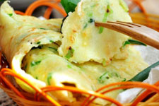3、鍋中放入少量的油,也可以直接在鍋底刷上一層油,倒入適量的面糊,煎至兩面金黃即可。