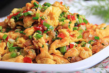 主料:雞蛋3個,細香蔥1小把。調(diào)料:剁椒1湯匙,植物油2湯匙,水適量。