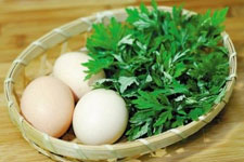 主料:雞蛋2個(gè),烏雞蛋1個(gè)。輔料:艾葉20克。調(diào)料:大蒜1個(gè),土雞蛋1個(gè),艾葉。