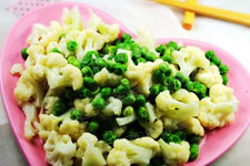 主料:菜花200g,豌豆50g。輔料:鹽2g,雞精2g,香油。