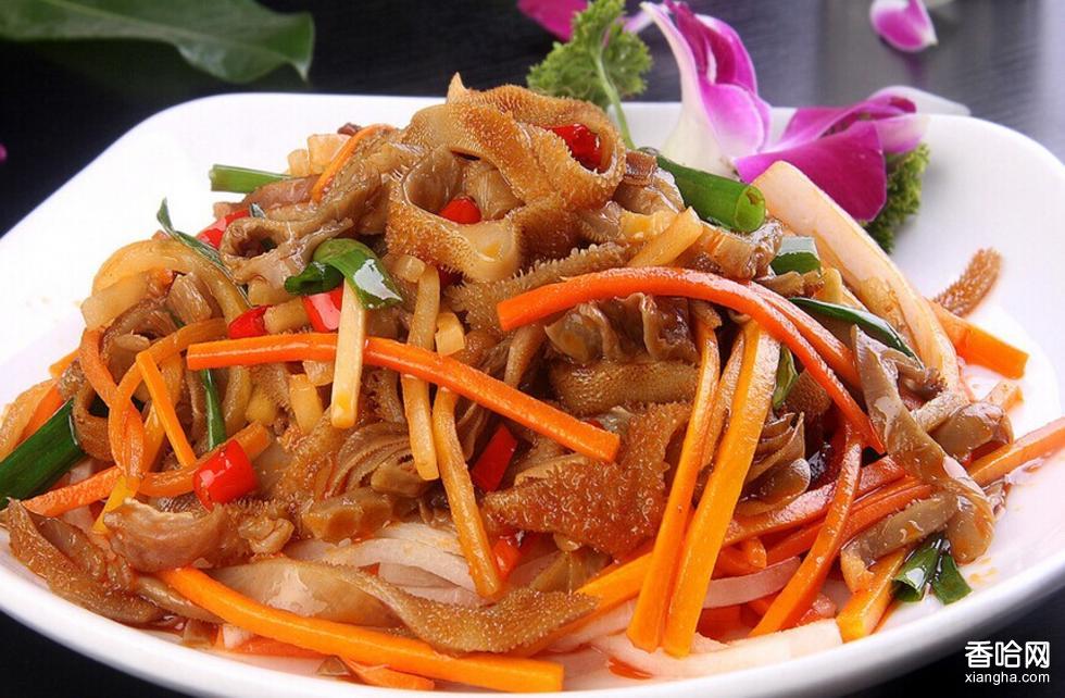 1.羊肚放進(jìn)開水中燙熟,撈出,切細(xì)絲;
