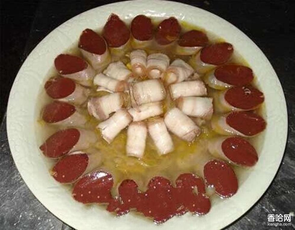辣罐是錫伯族人獨(dú)特的菜肴。通常將肉餡剁好,選用長辣椒切成2厘米一段將辣筋取出,再將肉餡灌入,掛糊后用油炸成金黃色撈出裝盤上席。有的還要澆汁,吃起來香辣帶甜,開胃爽口,能刺激食欲。特別是用發(fā)面餅卷食,風(fēng)味更佳。錫伯族的血腸也別具一格。宰羊時(shí),用大盆裝些鹽水接血,然后在開水鍋內(nèi)稍煮凝結(jié)成血塊,再將血塊搗碎拌上剁碎的羊油和羊蔥末、鹽、姜粉、胡椒粉等料后灌腸,捆緊扎實(shí),放入鍋中煮熟即成。切片乘熱食用,味道濃香,油而不膩。