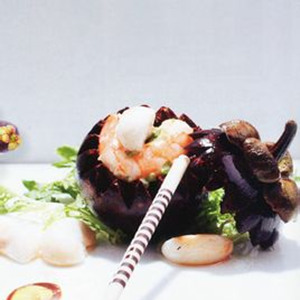 制法:山竹浸軟身,墊底;鮮蝦用蒜蓉拌好,放上面。把材料一起蒸5分鐘即成。