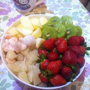 制法:山竹去皮去籽、番茄切薄片、蘋果去皮切片、生菜洗凈。所有材料混合拼盤,淋上沙拉醬即可。