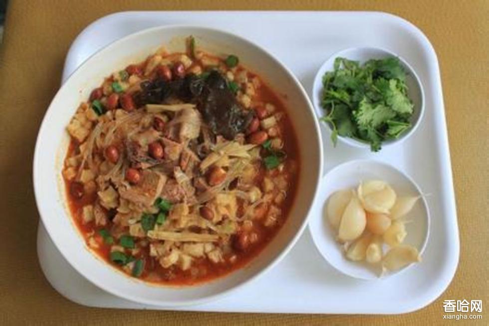 先將面粉揉成面團醒好,將羊肉切成大丁炒熟。然后將面搓成筷子般粗,下鍋煮熟,再澆上用羊肉原汁、羊肉丁和新鮮蔬菜燴成的湯,放入辣椒紅油即口可食用,面精肉鮮,風(fēng)味獨特。