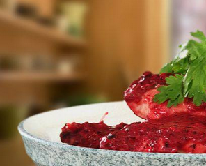 13、稍微凝固時,均勻地撒上辣椒醬。