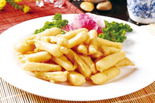 5、將油溫升高至8成熱,然后如果復(fù)炸至金黃色,撈出瀝油即可。