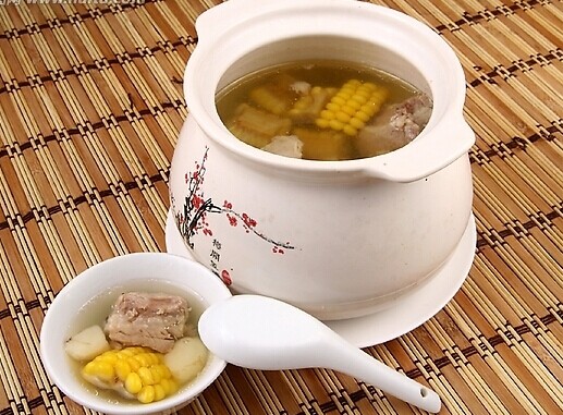 排骨1斤,白蘿卜半個,玉米1個,鹽少許,料酒,蔥適量,香油,胡椒粉,雞汁適量。