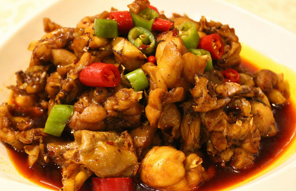 雞塊下鍋炸時,油溫要熱一些,雞塊炸至表面發(fā)硬時撈出。因此這道菜采用的是小雞,所以燉的時間不能太長,以免燉得太爛。另外還要掌握好火候,雞塊近爛時要立即轉(zhuǎn)大火收汁,不要等到雞塊都爛了,湯汁還有好多,這樣雞塊就沒有味道了。