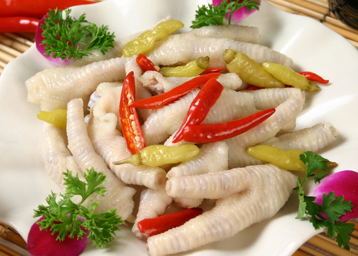 泡椒鳳爪是起源于重慶的獨特漢族特色小吃,屬渝菜小吃類。以酸辣爽口、皮韌肉香而著稱。泡椒鳳爪既能登大雅之堂,也為普通老百姓所喜愛。此款美食具有開胃生津、促進血液循環(huán)的功效。制作過程比較講究,這樣才能使泡椒的勁辣味道沁入鳳爪中。正宗的泡椒鳳爪豐滿潔白,咀嚼時骨肉生香,具有很強的催味功效。